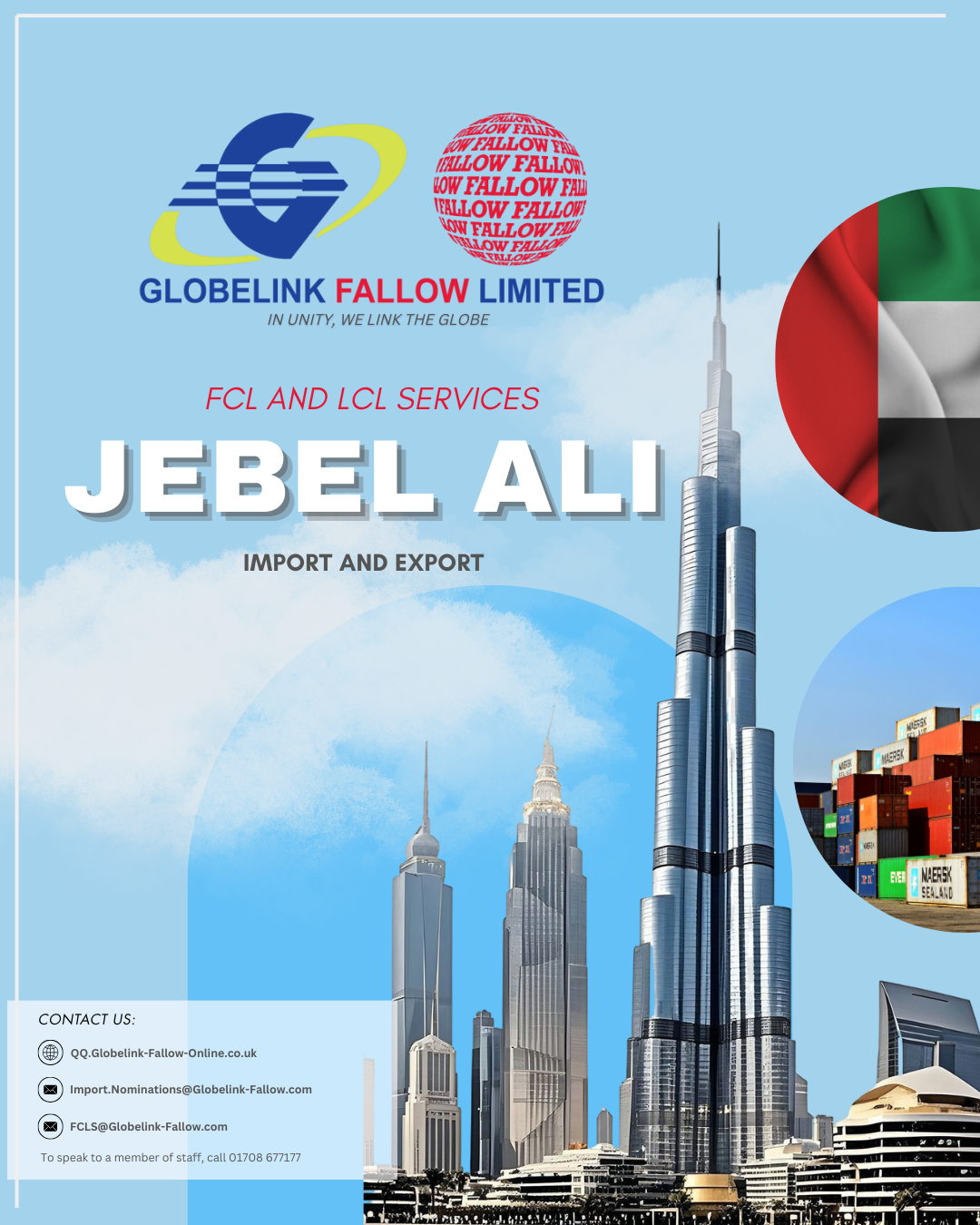 Weekly LCL/FCL IMPORT & Export to and from Jebel ali