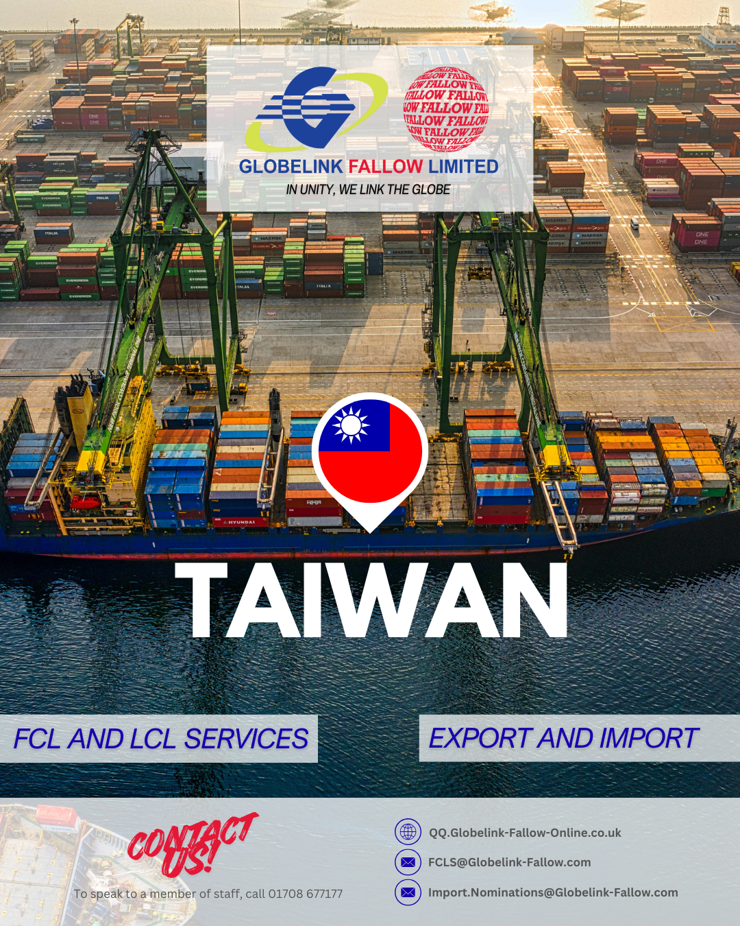 Weekly LCL/FCL IMPORT & Export to and from TAIWAN